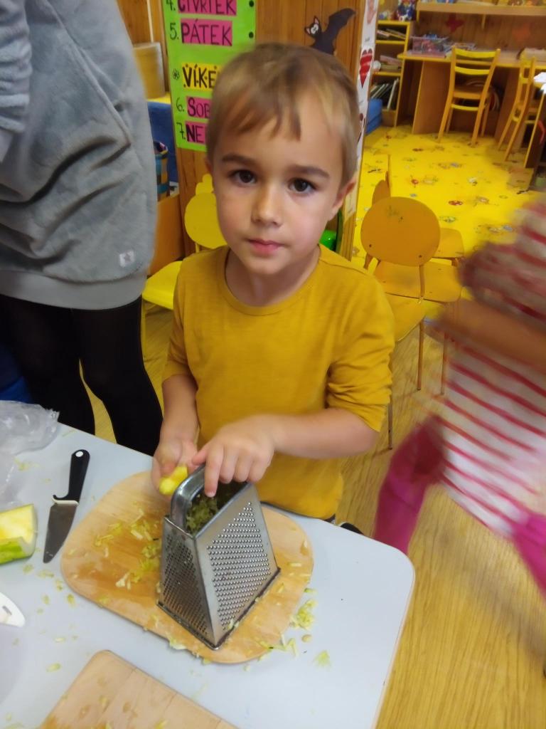 Jak trávíme podzimní dny ve školce? Chodíme na procházky, kde cestou stavíme domečky z přírodnin, pouštíme letadla, sbíráme houby a užíváme si venku společně spoustu zábavy. A nebyl by to podzim bez pořádné úrody jablíček, ze kterých se nám povedlo upéct výborné štrůdly :)