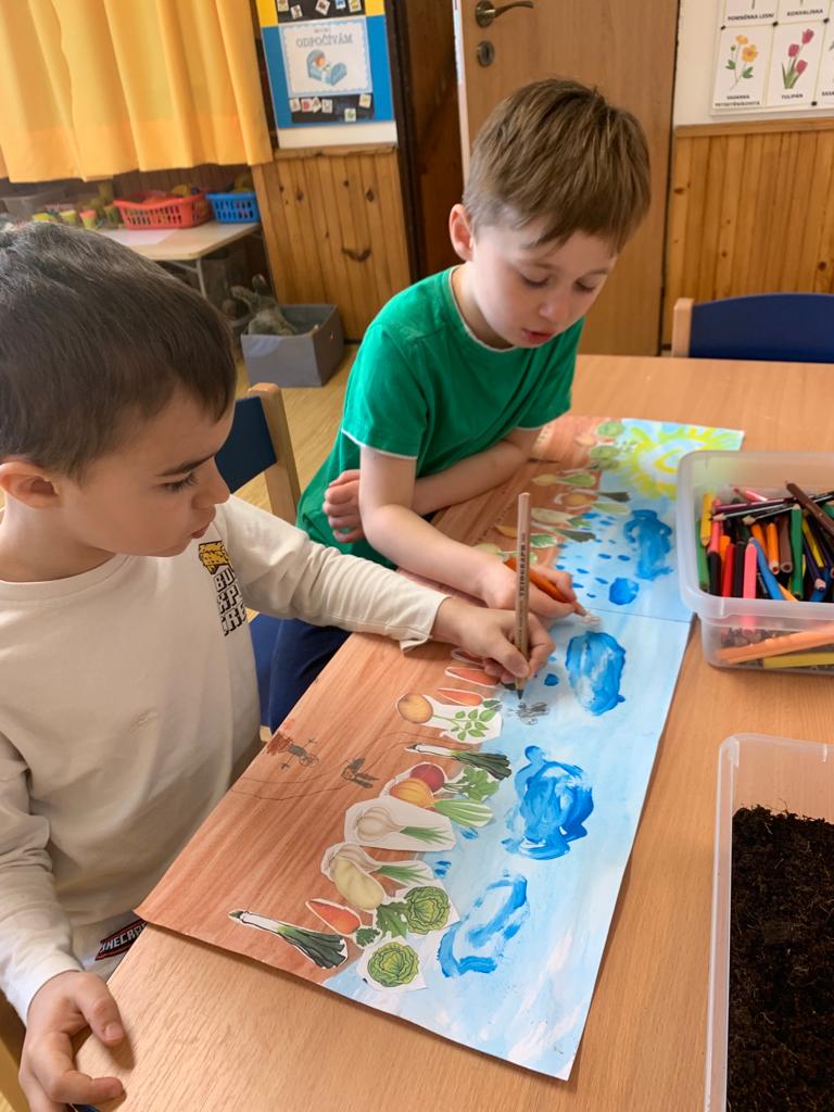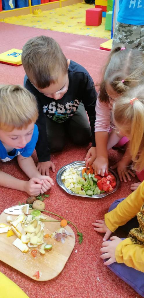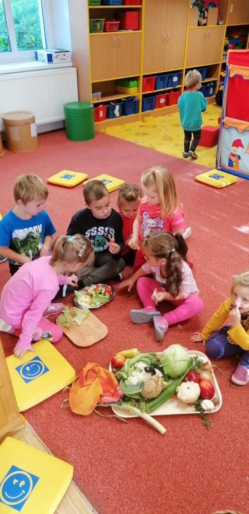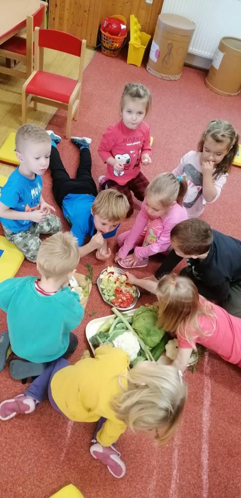 V říjnovém týdnu jsme se pustili do sklizně ovoce a zeleniny. Vše jsme pojmenovali, ochutnali a namalovali :)