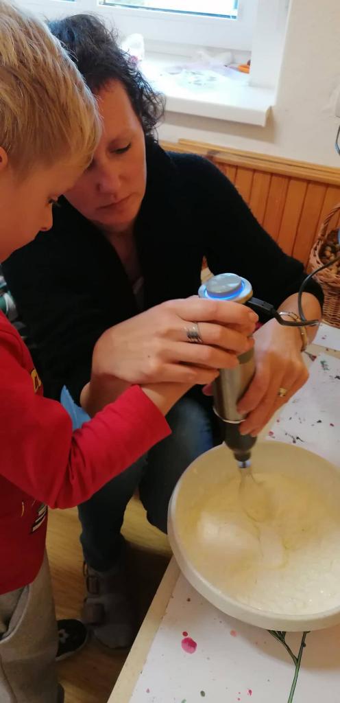 Také jsme si zkusili sami nachystat svačinky. Ušlehali jsme si tvaroh se smetanou a chutnalo nám náramně :)