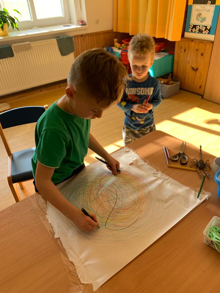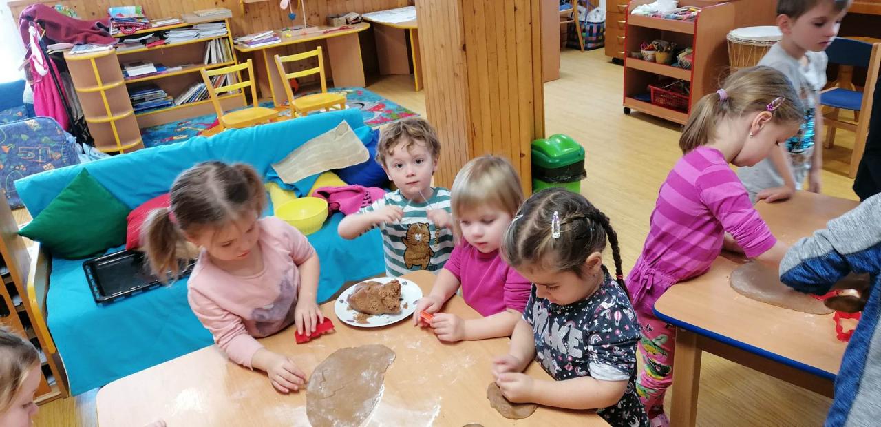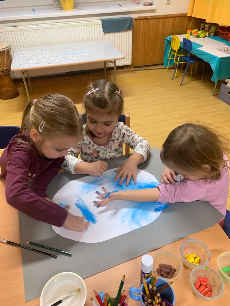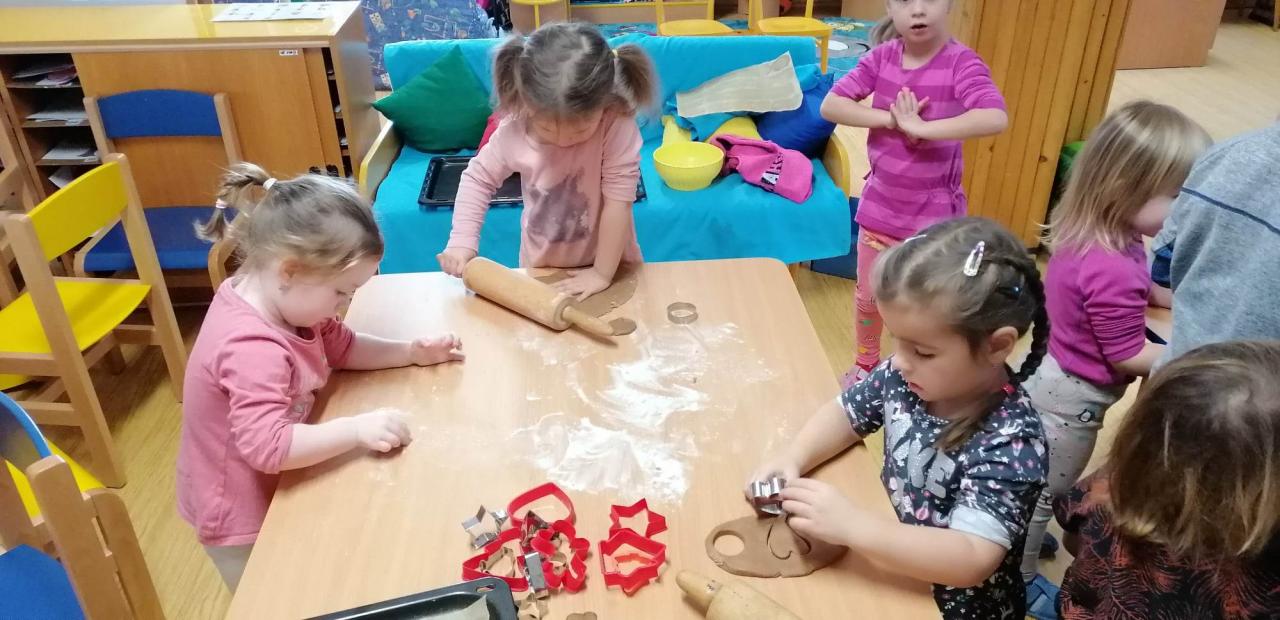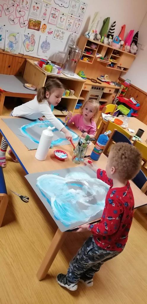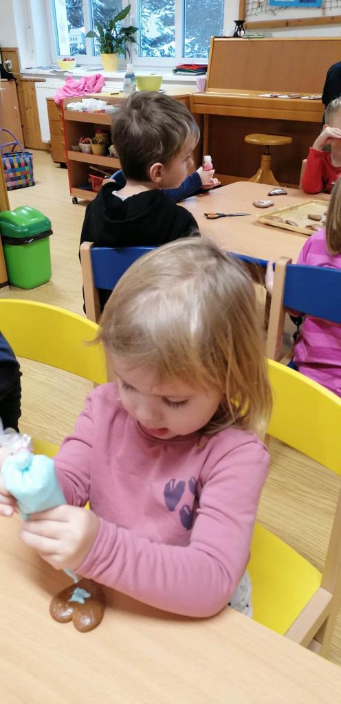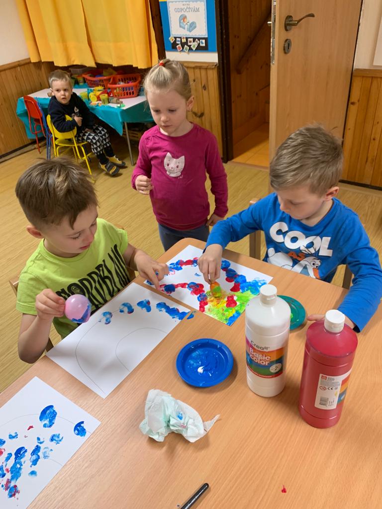 Hrajeme si, zpíváme, modelujeme, vymýšlíme různé hry, malujeme a spoustu dalšího.