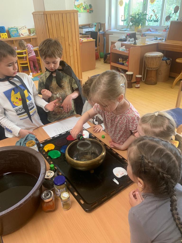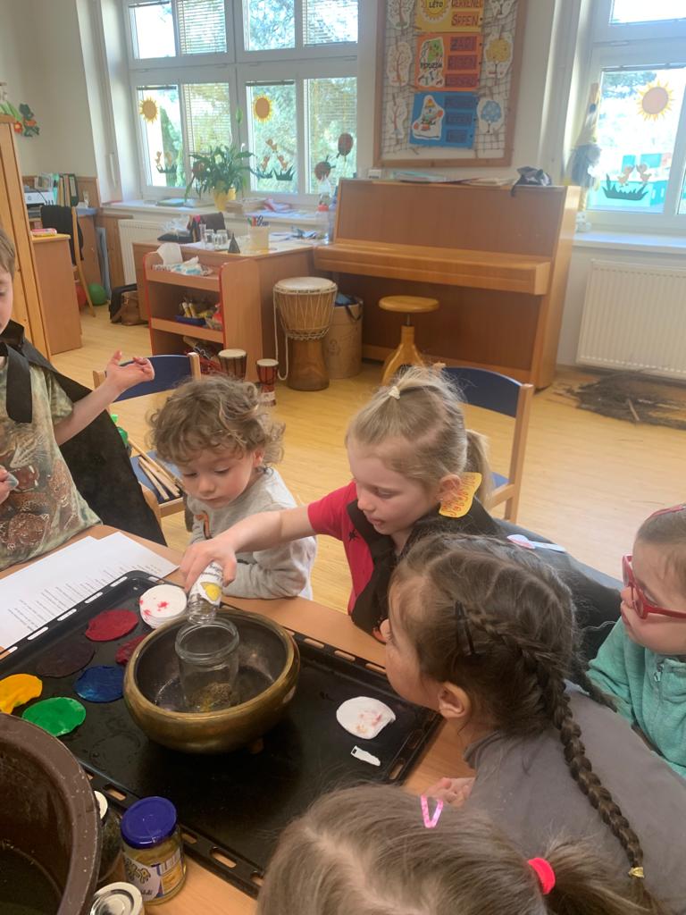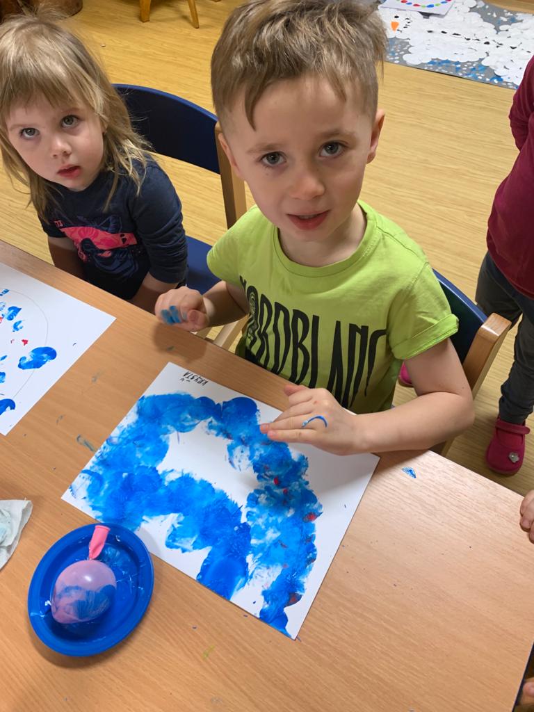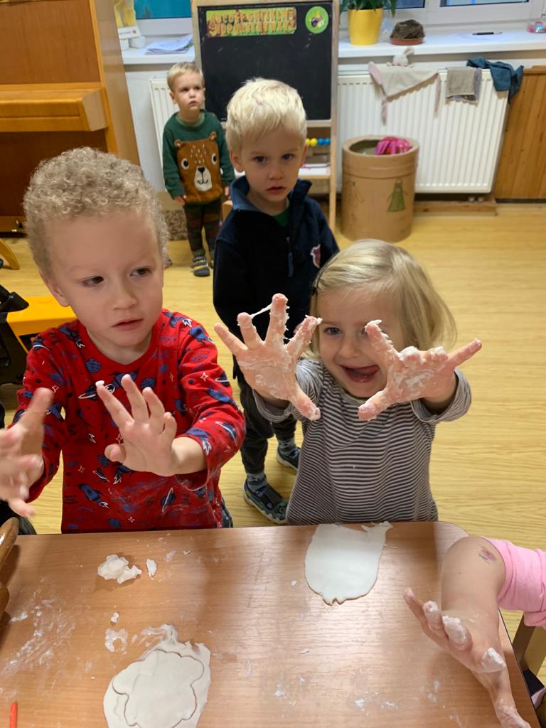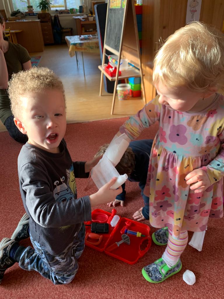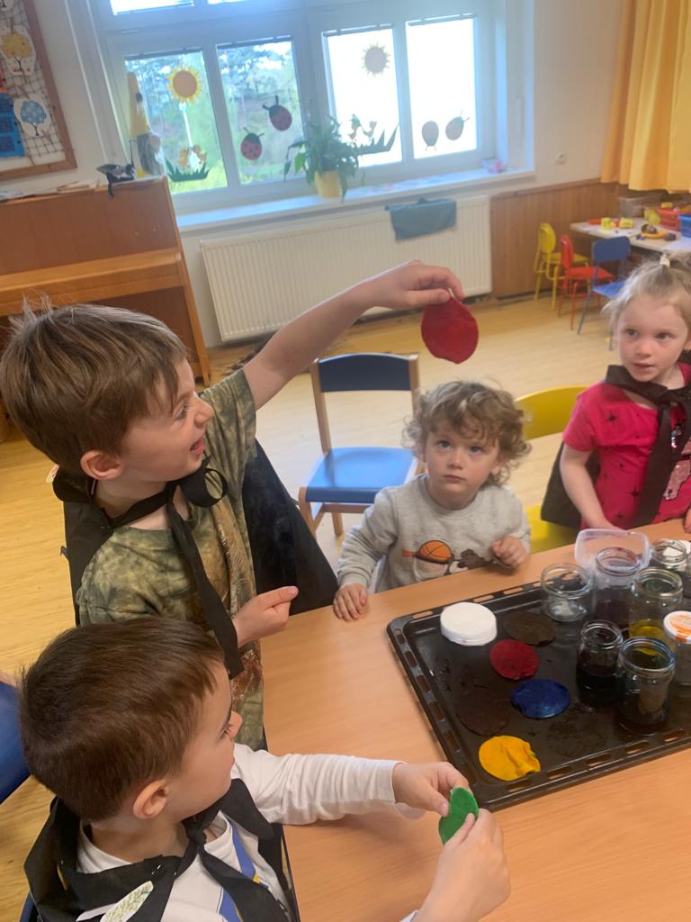 Hrajeme si, zpíváme, modelujeme, vymýšlíme různé hry, malujeme a spoustu dalšího.