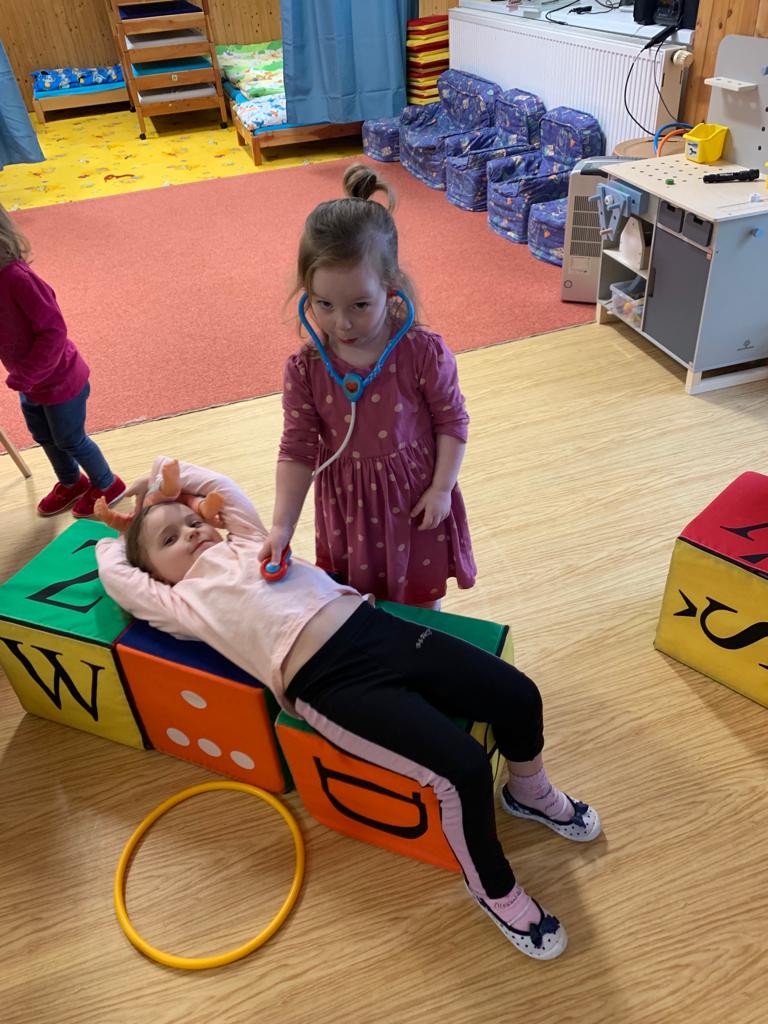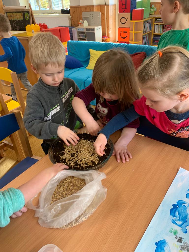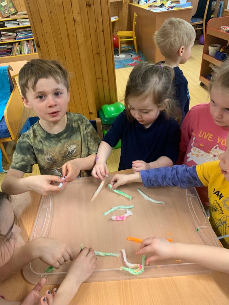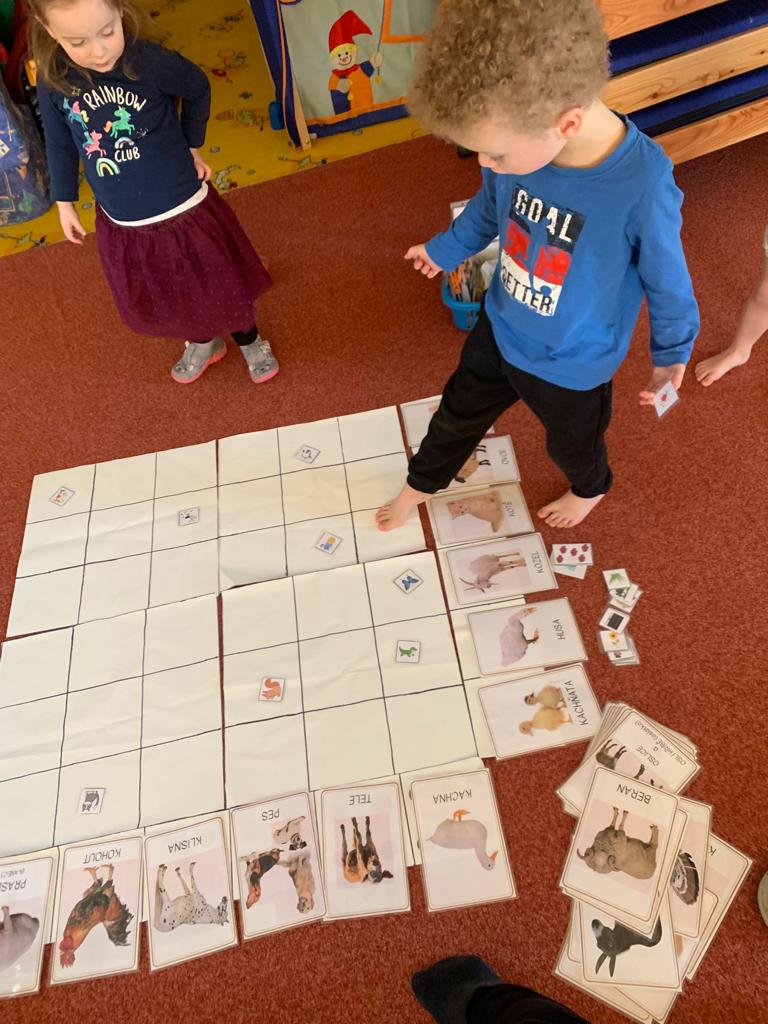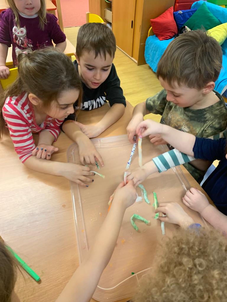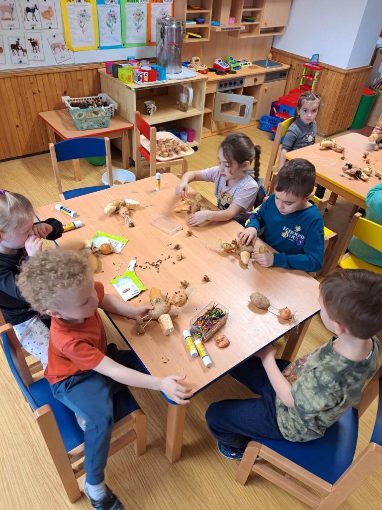 Hrajeme si, zpíváme, modelujeme, vymýšlíme různé hry, malujeme a spoustu dalšího.