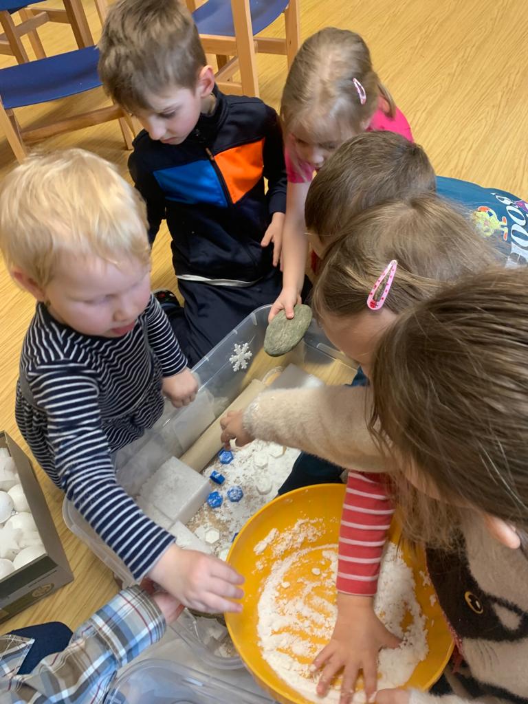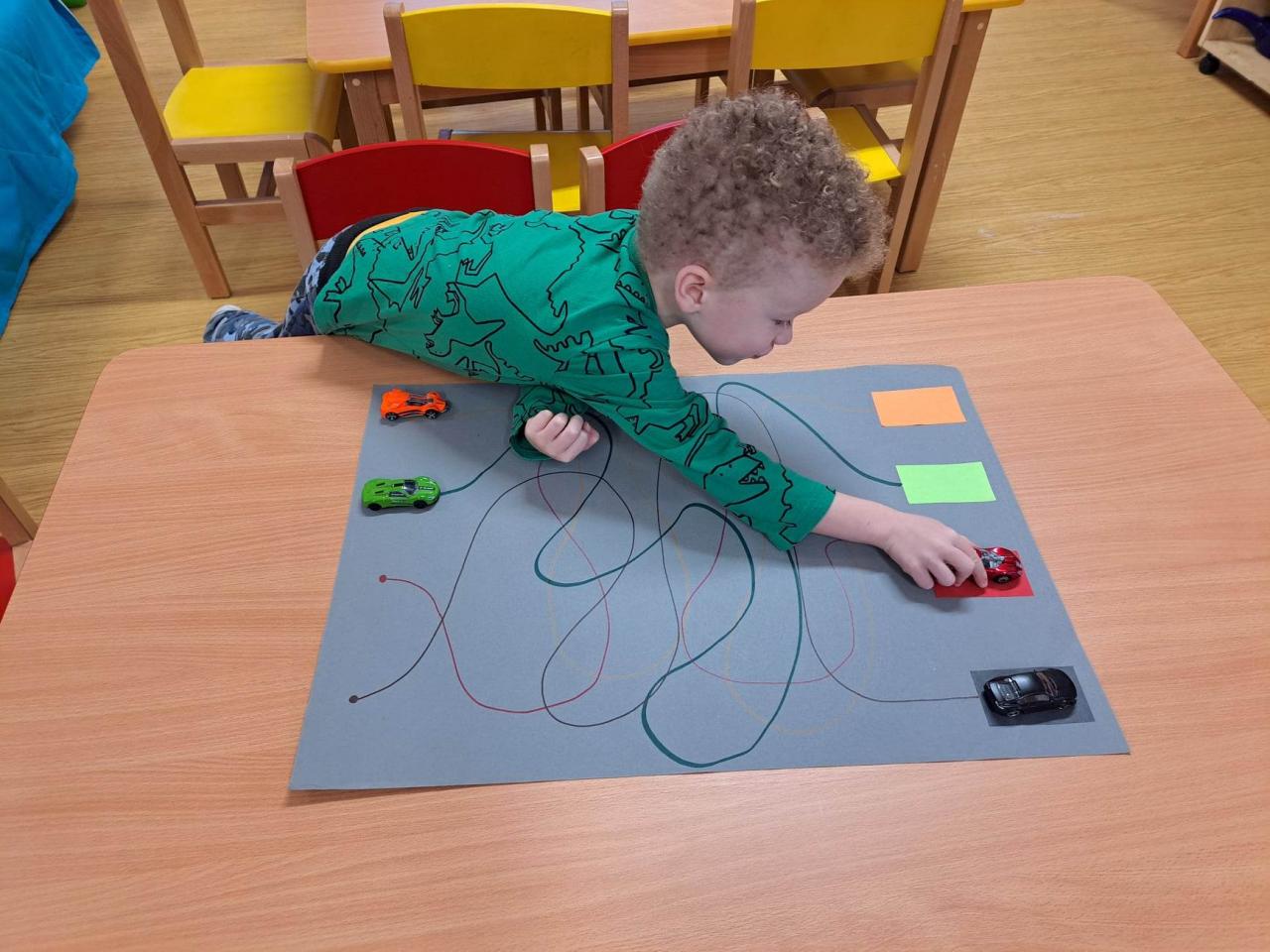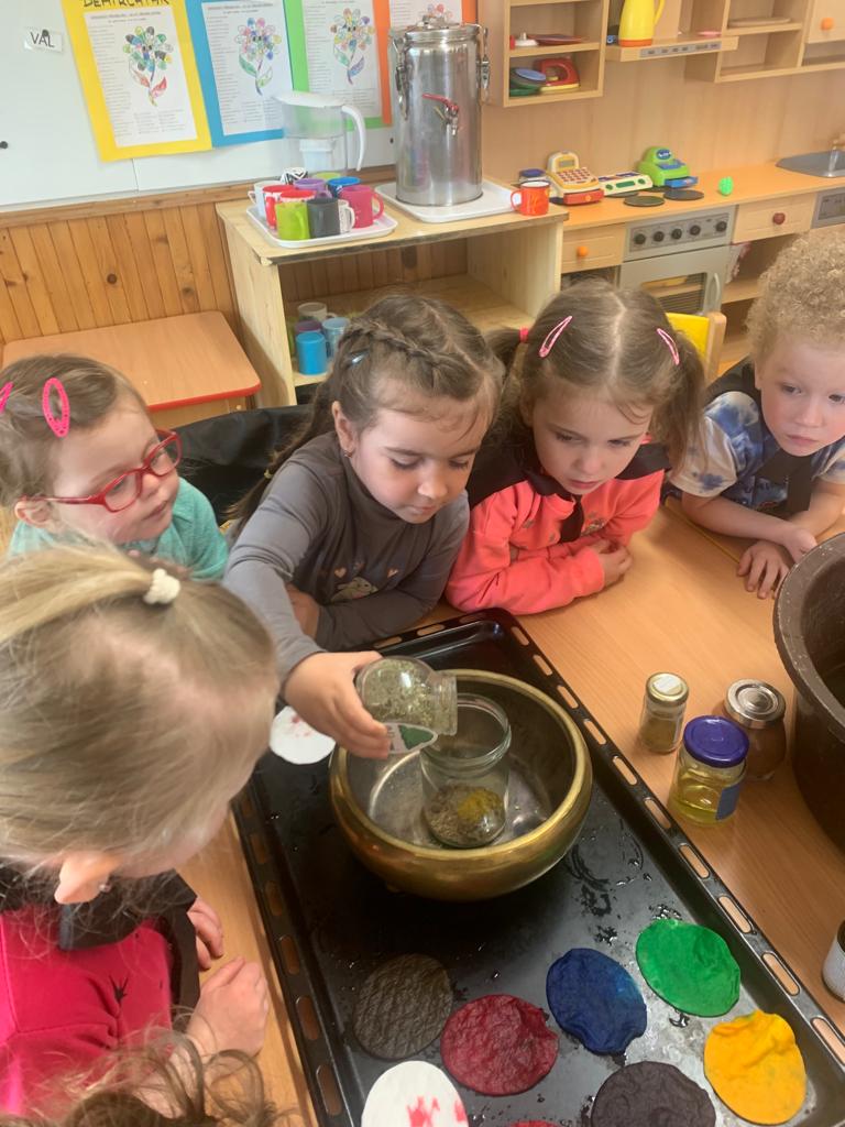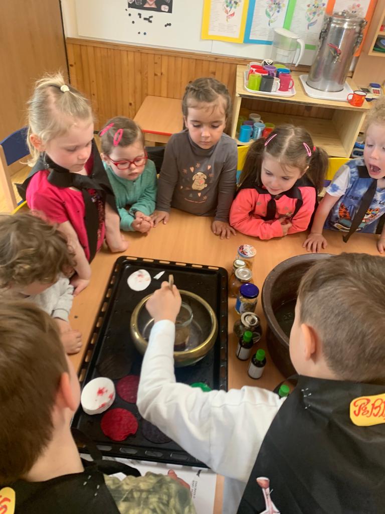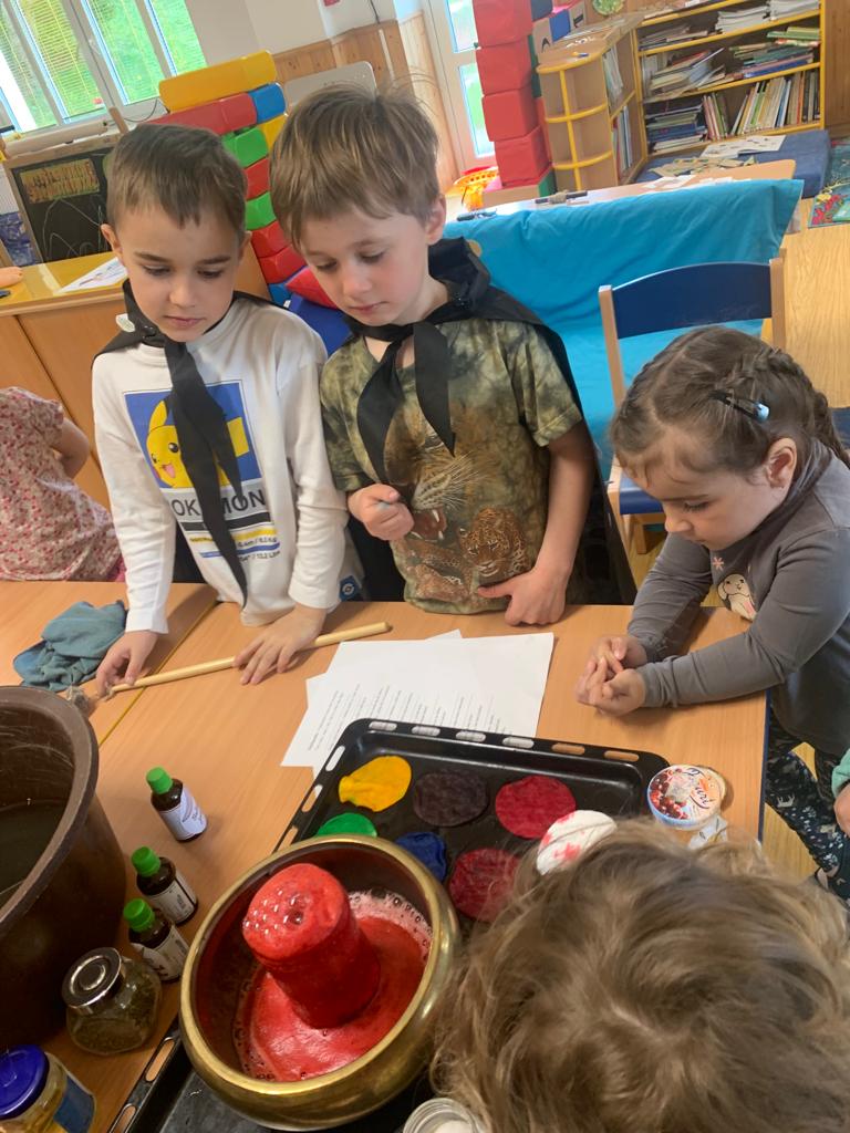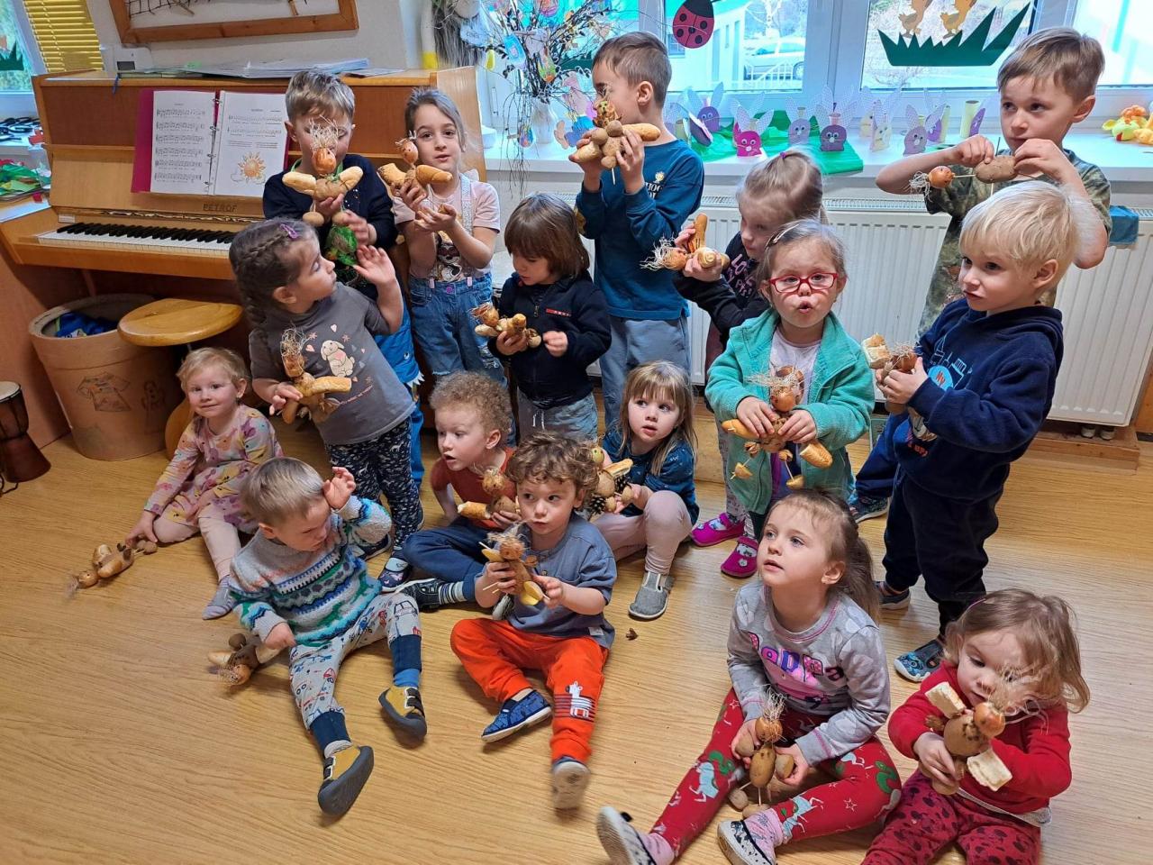 Hrajeme si, zpíváme, modelujeme, vymýšlíme různé hry, malujeme a spoustu dalšího.
