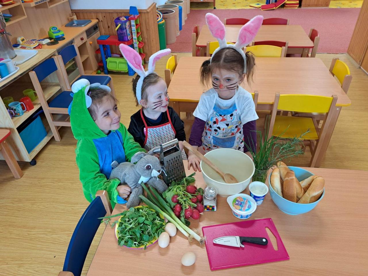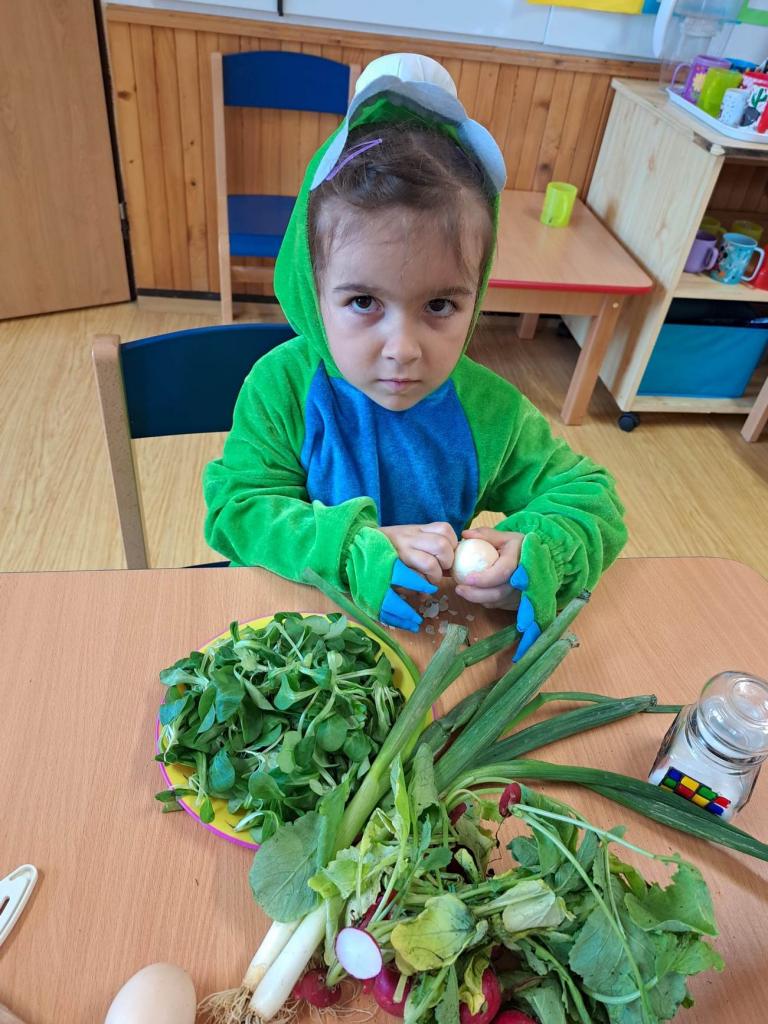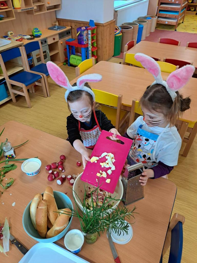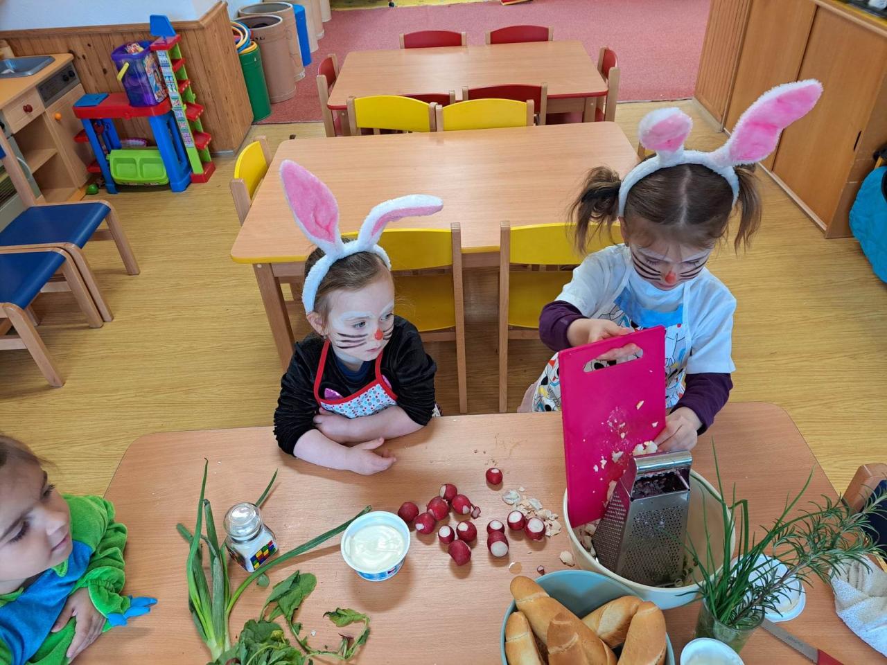 Do vaření s projektem Zdravá 5 jsme se zapojili i s druhým týmem, zajíčky a návštěvníkem z jiné planety. Pomohl nám uvařit a pohostit ostatní děti ze školky :)