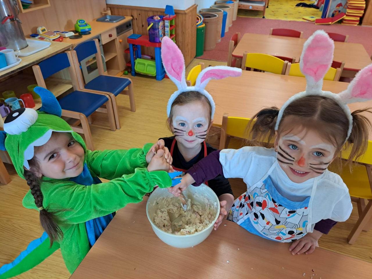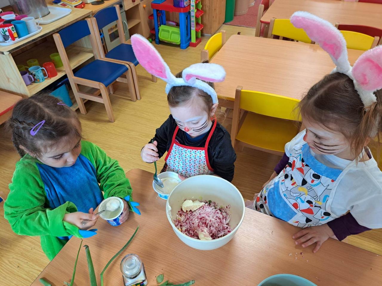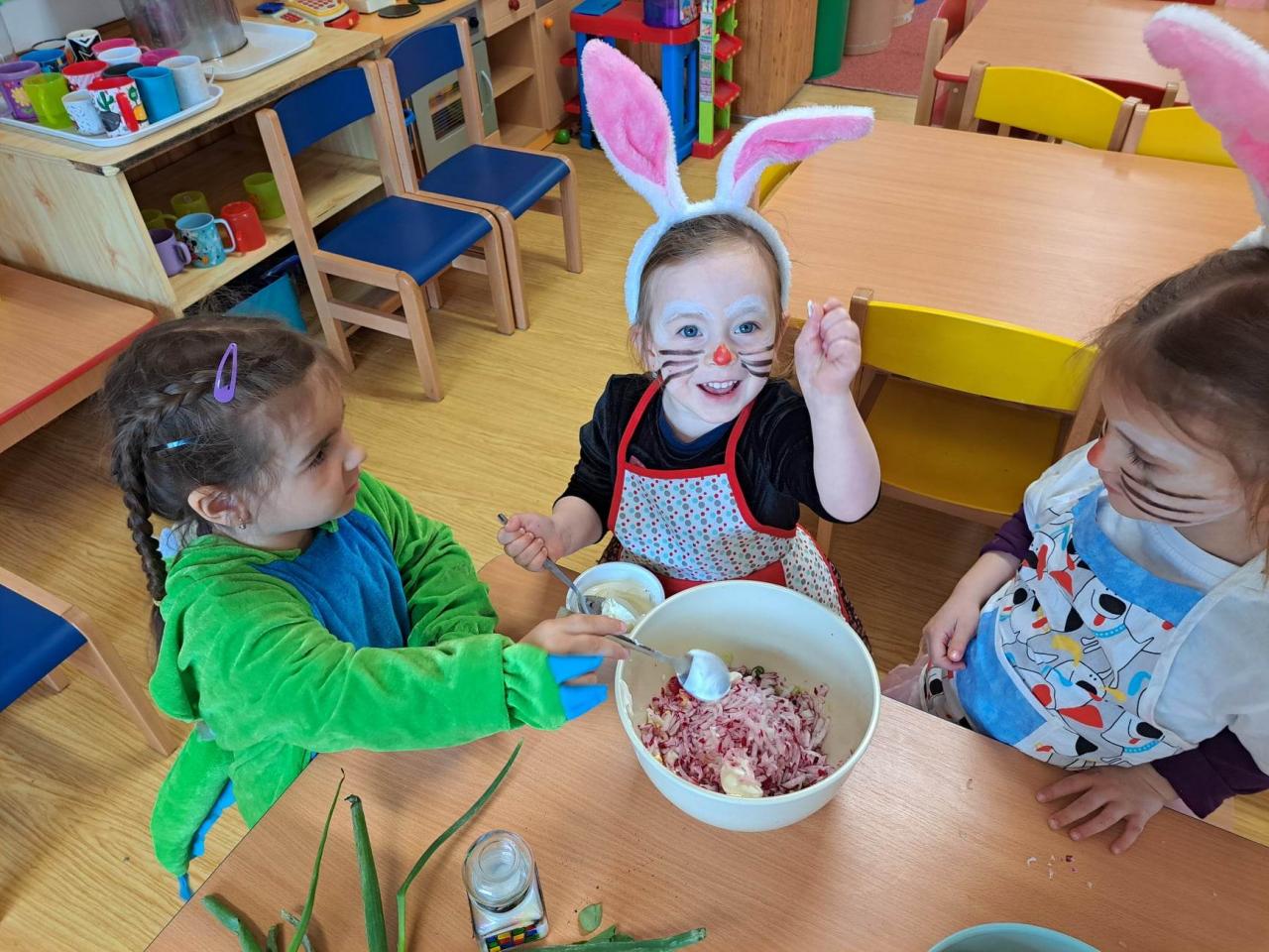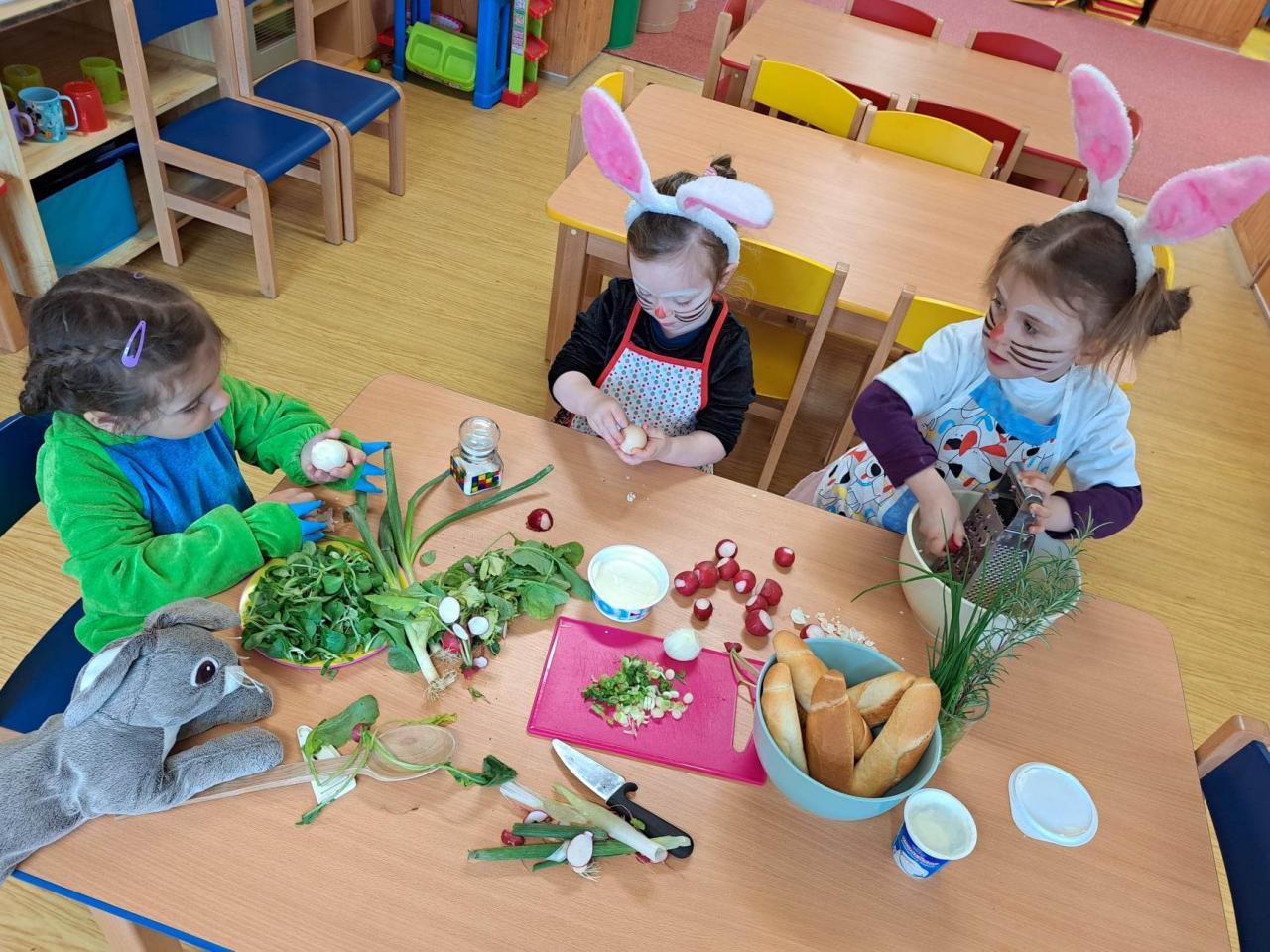 Do vaření s projektem Zdravá 5 jsme se zapojili i s druhým týmem, zajíčky a návštěvníkem z jiné planety. Pomohl nám uvařit a pohostit ostatní děti ze školky :)