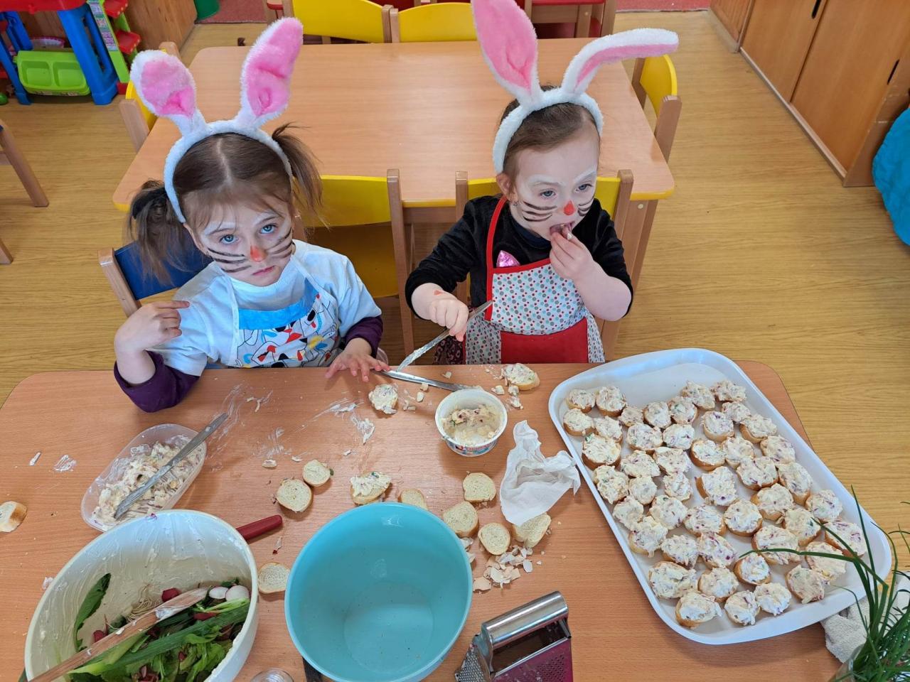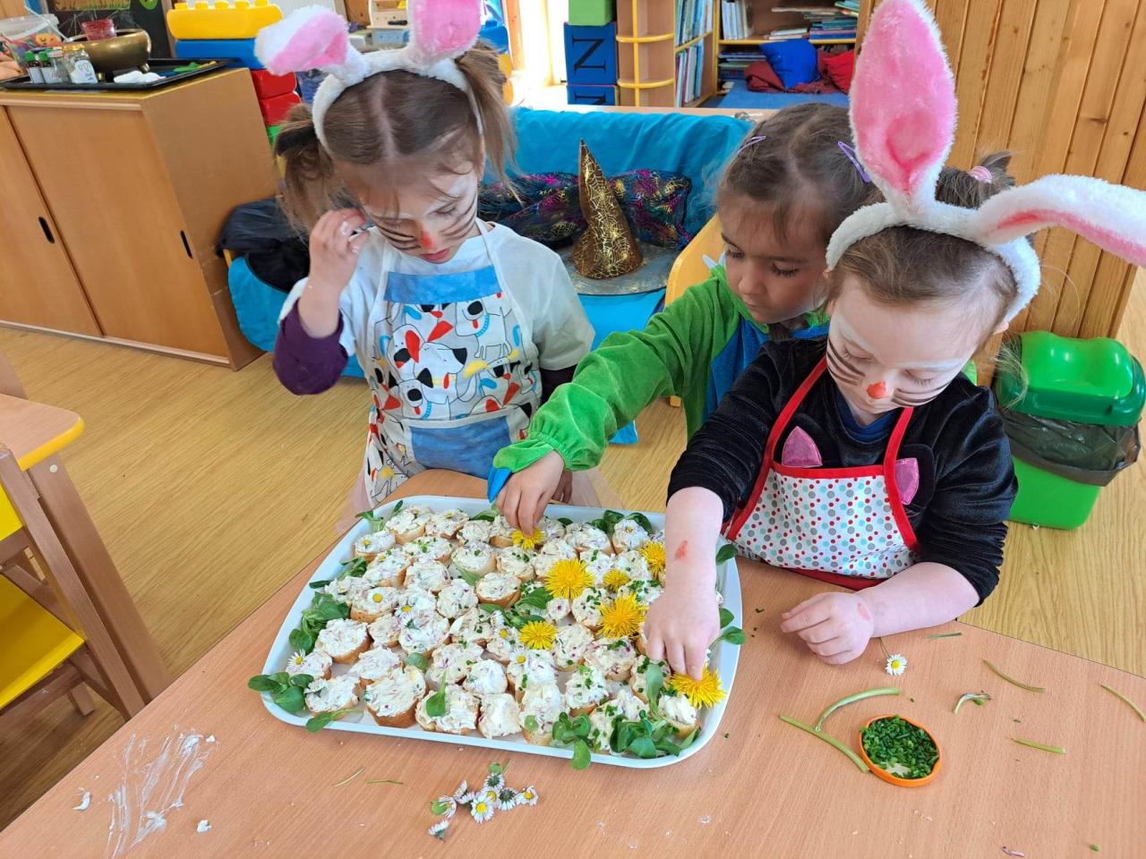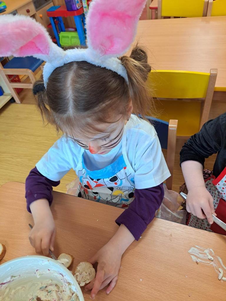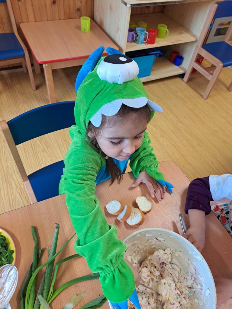 Do vaření s projektem Zdravá 5 jsme se zapojili i s druhým týmem, zajíčky a návštěvníkem z jiné planety. Pomohl nám uvařit a pohostit ostatní děti ze školky :)