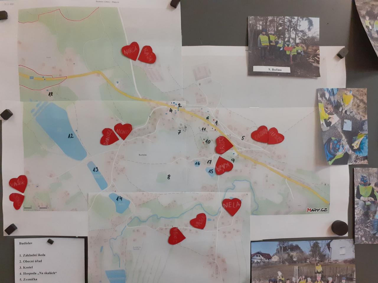Žáci byli seznámeni s cílem a organizací projektu. Než jsme vyrazili na průzkumnou trasu, žáci si vyhledali a vytiskli mapu Budislavi. Rozlosovali se do čtyř skupin (mapaři, hledači reportéři a průzkumníci) a zvolili si své kapitány. První skupinou byli „mapaři“ a jejich úkolem bylo vyznačit na mapě trasu a vést nás podle ní na místa, která jsme si určili. Druhá skupina „reportéři“ měla za úkol zdokumentovat všechna zajímavá místa, která se nacházela na naší naplánované trase. Třetí skupinou byli „průzkumníci“ a jejich úkol spočíval v průzkumu trasy z hlediska zásad bezpečného pohybu a pobytu v přírodě. Čtvrtou skupinu tvořili „hledači“, kteří měli plnit úkoly na jednotlivých stanovištích na trase. Jelikož byl projekt časově náročný, odcházeli jsme ze školy hned po obědě, abychom se stihli vrátit do 16,00 hodin. Děti byly vybaveny zápisníky, psacími potřebami, plánky a buzolami. Jejich úkolem bylo zjišťovat, jak se která část Budislavi nazývá. Názvy měli vyluštit pomocí poschovávaných znaků morseovy abecedy nebo pomocí tajného kódu, který obsahoval informaci o místě, kde je název schován. Celou cestu si žáci zpestřili hledáním věcí, rostlin a různých zajímavostí, které měli napsané na kartičkách. Skupiny mezi sebou soutěžily, kdo nejdříve všechny položky najde a splní zadaný úkol. Počasí nám přálo, přestože byl ještě únor a děti si toto odpoledne velice užily. Jejich přáním bylo, celou akci alespoň ještě jednou zopakovat.