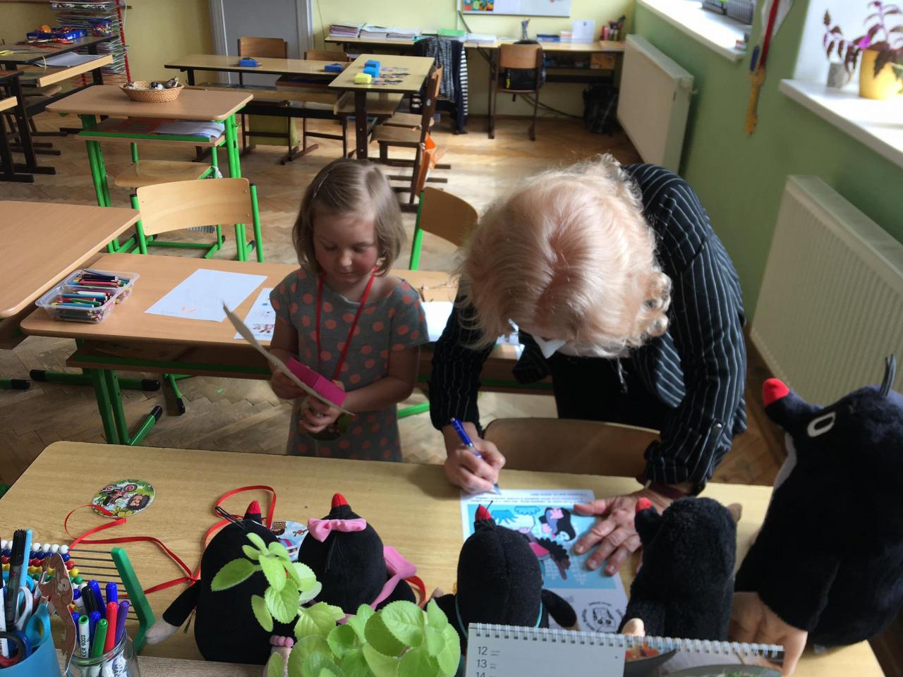 Předškoláci měli za úkol poznávat čísla, písmena, geometrické tvary, nakreslit svou rodinu, přednést básničku. Po krátkém popovídání si s paní učitelkou a napsáním svého jména na školní tabuli, obdrželi předškoláci pamětní list, medaily a drobnost v podobě sladkosti :)