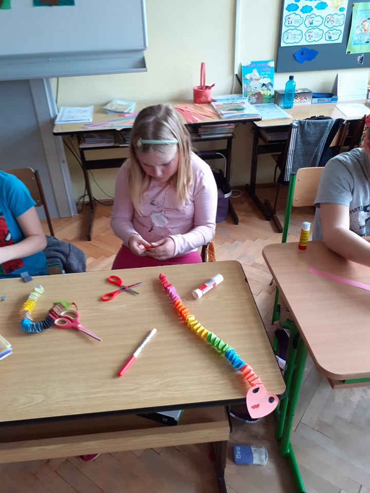 Ve družině nás zachvátila "hadománie", žáci se snažili vyrobit co nejdelšího hada ze skládaného papíru, učíme sezáklady quillingu.