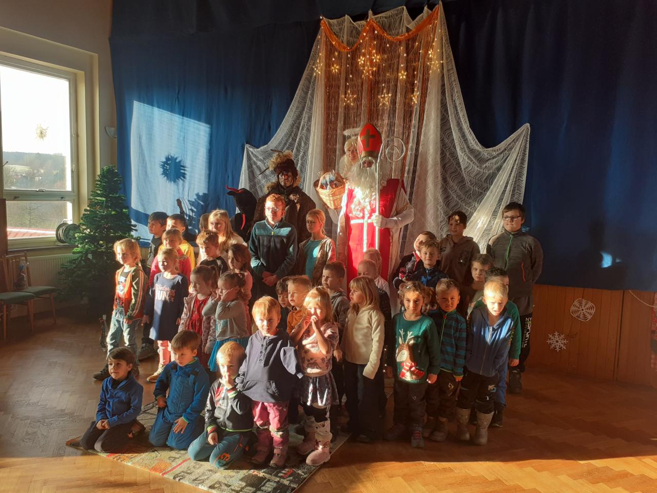 Dobrotivý a moudrý Mikuláš se vyptával dětí, zda byly hodné, a kontroloval v Knize hříchů, kdo přes rok zlobil. Pak hříšníky požádal o básničku nebo písničku, laskavý anděl rozdával sladké dárečky hodným dětem a čerti všechny trochu postrašili a odradili od zlobení :-)