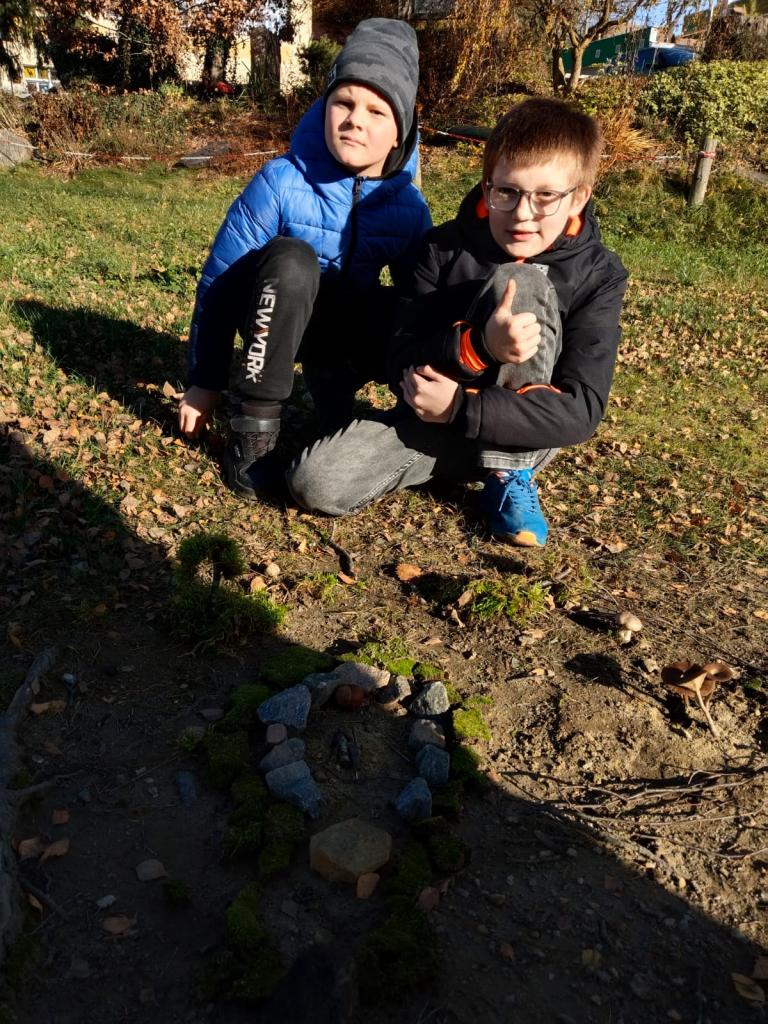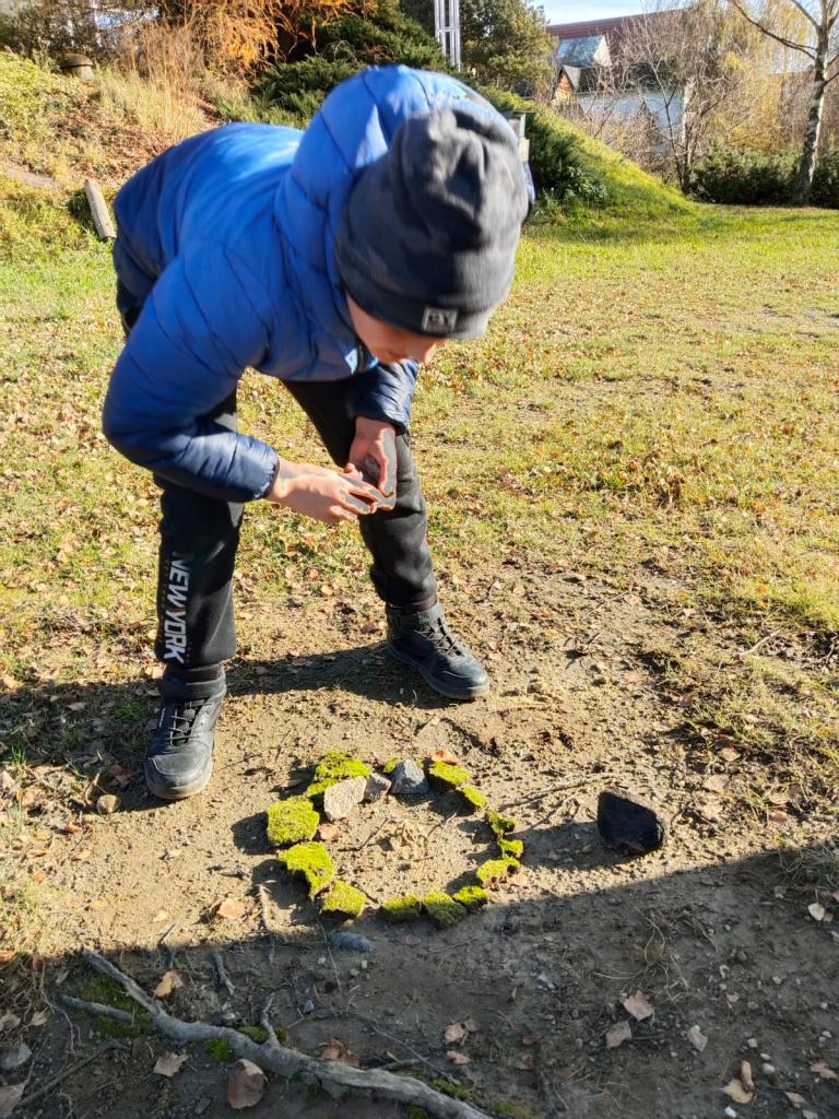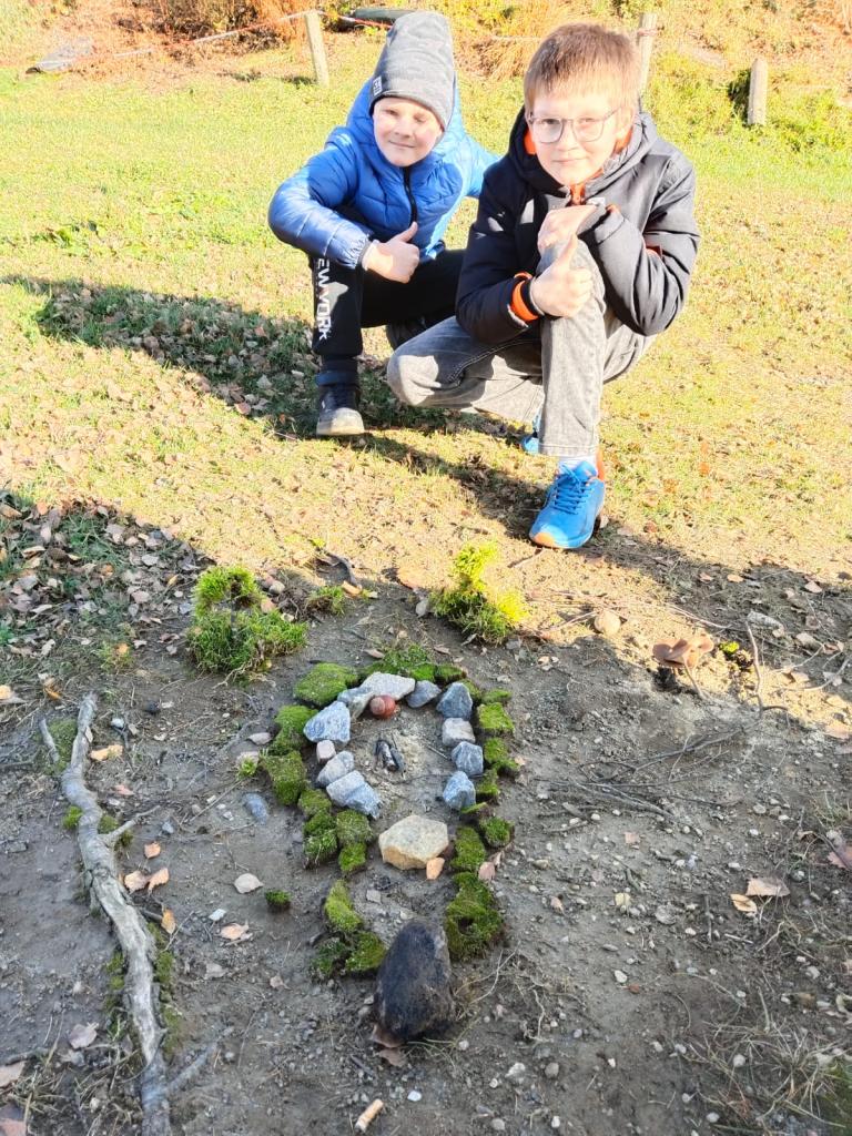 V uplynulém týdnu jsme využili krásného počasí a přesunuli výtvarnou výchovu ven do školní zahrady a blízké přírody. Děti si vyzkoušely techniku land art - tvorbu výtvarných děl z přírodních materiálů.
