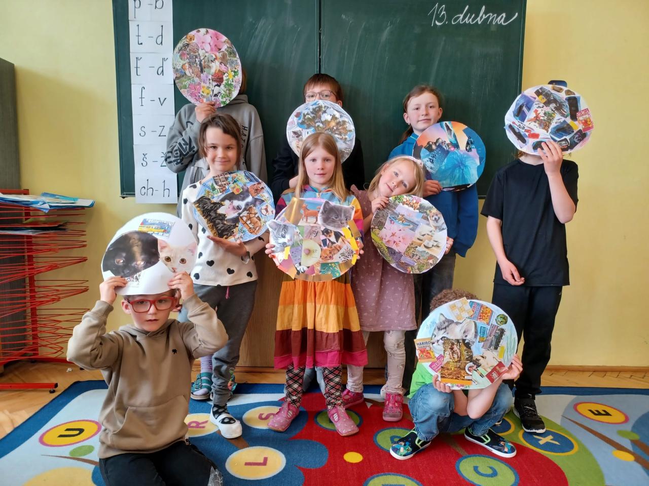 Poznali jsme různé výtvarné techniky, objevili jsme při tvorbě spoustu ctností a jsme hrdí na náš společný výsledek, který si můžete prohlédnout v chodbě nad fotbálkem.