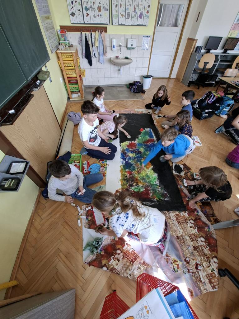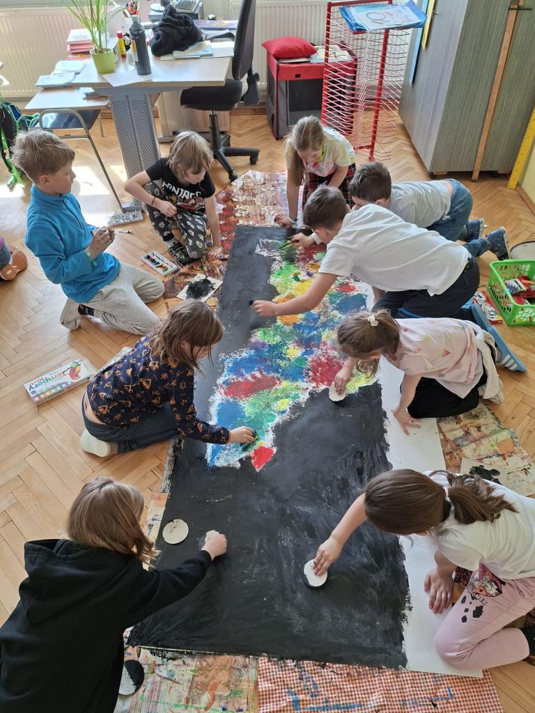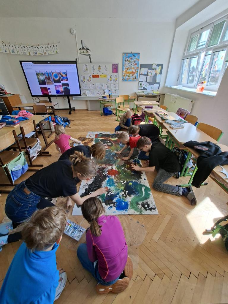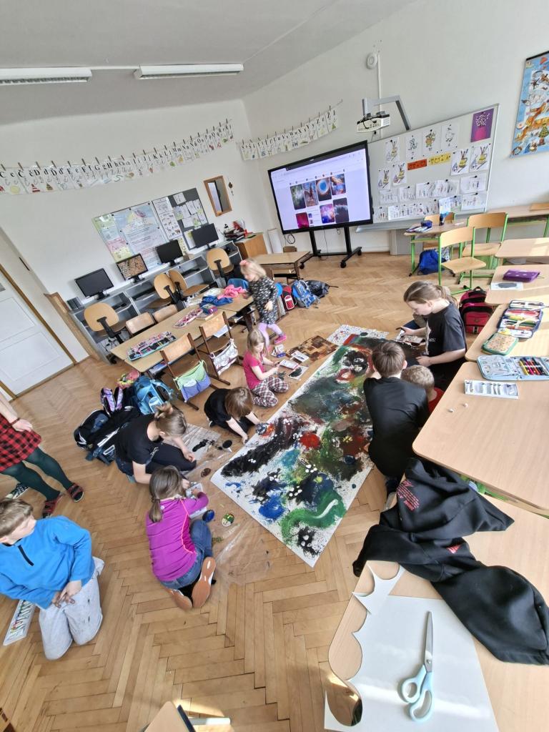 Ve výtvarné výchově jsme tvořili Náš vesmír. Nejprve jsme společně vytvořili hvězdnou mlhovinu, poté každý sám svoji planetu, na které ztvárnil co má rád. Tvoření jsme si všichni moc užili.